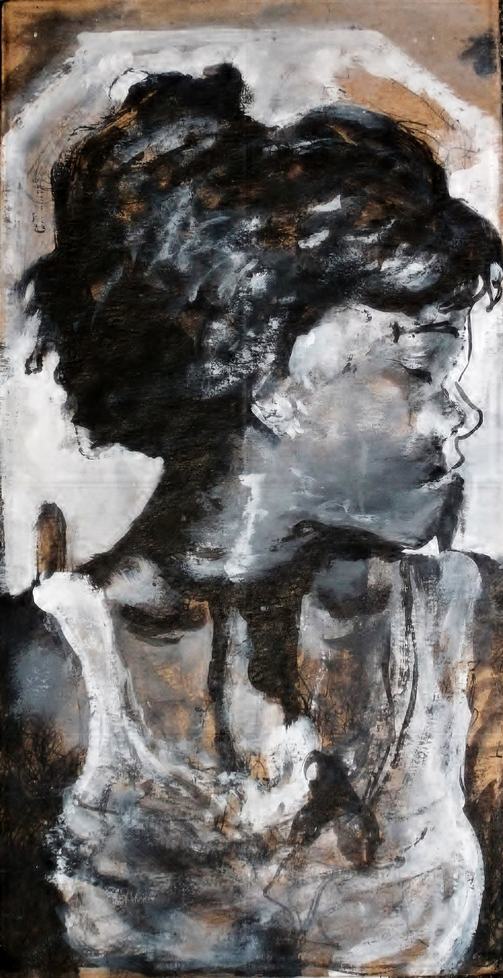 High quality matte finish print of a black and white ink painting on cardboard. Available in two sizes.